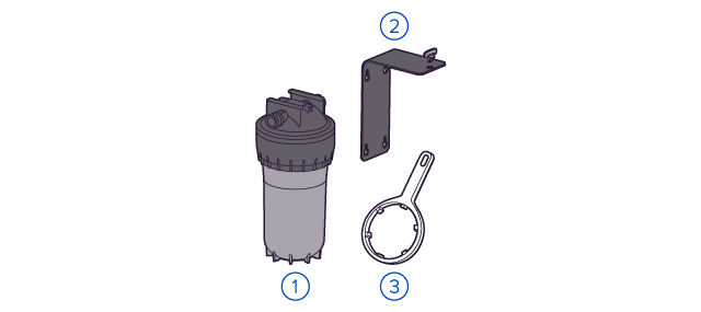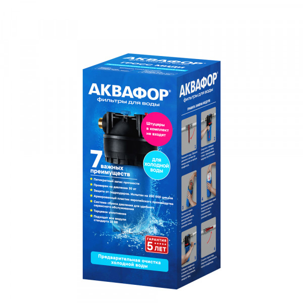 • Корпус магистрального фильтра из армированного пластика с удобным креплением. Подходит только для холодной воды.