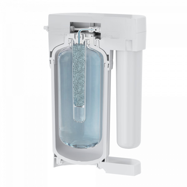 Благодаря инновационному накопительному баку водо-водяного типа система DWM-80SN занимает под мойкой в два раза меньше места, расходует до 9 тонн воды в год меньше и сохраняет работоспособность даже при слабом напоре.