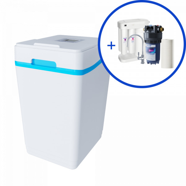 Малогабаритная система умягчения воды с обратноосмотической системой очистки и предфильтрацией в подарок