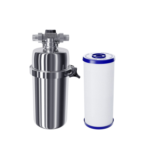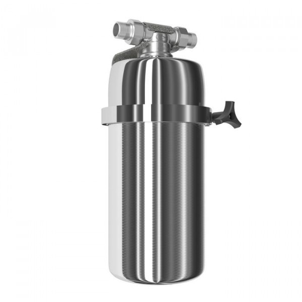 Модель оснащена быстросъемным креплением «американка», поэтому фильтр можно устанавливать в небольших нишах и труднодоступных местах. Нижний полукорпус изготовлен из нержавеющей стали марки AISI 316, особенно устойчивой к коррозии и высоким температурам.